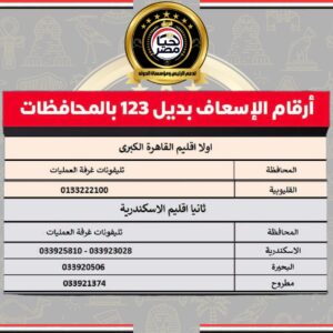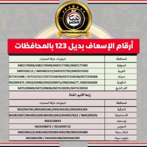 📵 ونظرًا لتأثر شبكات الاتصالات، أشار البيان إلى أن الرقم الرئيسي للإسعاف (123) قد يواجه صعوبة مؤقتة في الوصول إليه، داعيًا المواطنين لاستخدام الأرقام البديلة الموضحة في الصور المرفقة بالبيان، وكذلك الرقم (137) من الهاتف الأرضي للاستفسارات الطارئة المتعلقة بالرعاية المركزة والحضانات.